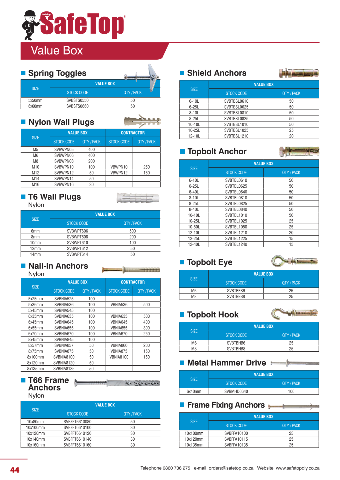 Value Box Fasteners